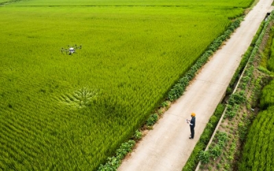 드론의 농업적 활용은 2~3m 저공에서 시속 10~20km 이하로 소면적에서 대면적까지 정밀방제에 유리하며 벼·맥류 등의 파종 및 비료, 제초제 입제 살포 등의 농작업도 작업능력이 뛰어나 노력 절감 효과가 우수한 것으로 알려져 있다.