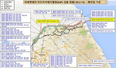 이로써 화천군은 68건, 연천군에서는 64건의 야생멧돼지 아프리카돼지열병이 확진됐으며 전국적으로는 204건이 됐다.