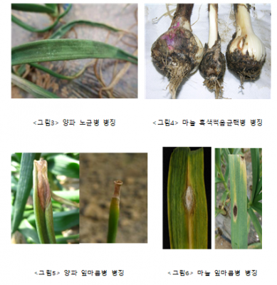 양파에 발생하는 노균병과 양파·마늘에서 동시에 발생하는 잎마름병, 흑색썩음균핵병 같은 곰팡이병은 겨울철 습도가 높은 상태에서 피해가 확산되고 기온이 오르면 2차 감염을 일으킨다.