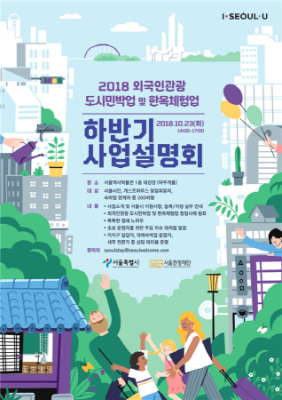 서울시는 외국인 관광객 대상 게스트하우스, 민박, 한옥숙박 창업에 관심 있는 시민들을 위한 '2018 하반기 외국인관광 도시민박업 및 한옥체험업 사업설명회'를 오는 23일 오후 2시∼오후 5시 서울역사박물관 1층 대강당에서 개최한다. 관심 있는 예비창업자와 신규 운영자 누구나 무료로 참가할 수 있다.