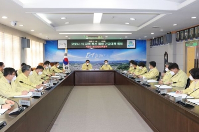 [충청뉴스큐]옥천군은 19일 군청 상황실에서 대구지역 코로나-19 확진환자가 추가 발생함에 따라 지역사회 확산예방을 위해 김재종 옥천군수 주재로 긴급 비상대책회의를 열었다.