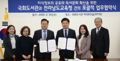 전라남도교육청과 국회도서관은 이 협약을 통해 지식정보 자원을 공유하고 공동 협력 체제를 구축해 효율적인 교육정책 수행에 이바지하고 평생교육체제를 선도해나가기로 합의했다.