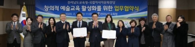 두 기관은 전남의 학교 예술교육 내실화를 위해 역량 있는 기관과 네트워크를 구축해 초·중·고등학생의 문화·예술체험 활동을 활성화하고 교육 프로그램을 통한 교원 예술교육 역량강화, 지역사회 문화 예술 증진해 협력해 나간다는 방침이다.