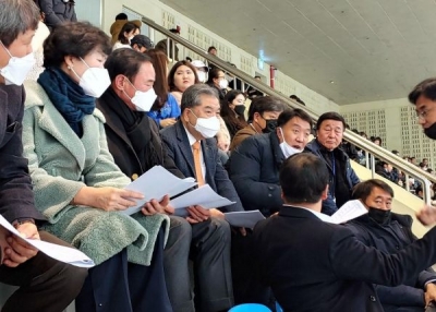 [충청뉴스큐] 이재정 경기도교육감이 20일 제101회 전국동계체육대회 빙상쇼트트랙 경기가 진행 중인 성남 탄천종합운동장 빙상장을 찾아 경기를 참관하고 코로나19로 인해 시상식을 진행하지 못한 19일 수상자들에게 메달을 직접 걸어주며 격려했다.