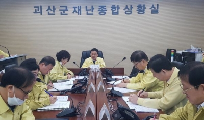 [충청뉴스큐] 충북 괴산군이 코로나19의 지역사회 확산에 따라 21일 군 재난상황실에서 이차영 군수 주재로 긴급 종합대책회의를 열었다.
