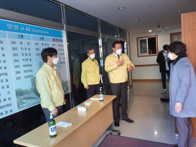 김재종 옥천군수는 23일 관내 소재 대형 교회인 옥천교회, 동성교회, 밀알교회 등을 방문해 손 소독제를 비치하고 마스크를 배부하는 등 대주민 예방수칙을 강조했다.