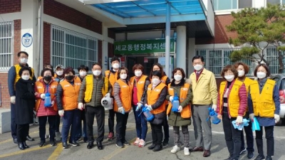 이날 행사 참가자들은 코로나19 확산 방지를 위해 버스승강장, 체육시설 등 세교동 일대에서 방역을 진행했으며 감염병 예방 수칙을 지역 주민들과 공유하고 확진자 발생에 따른 시민들의 불안감 해소에 노력했다.