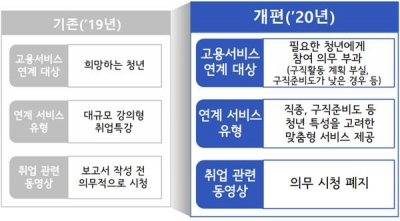 매월 의무적으로 수강해야 했던 취업 관련 동영상의 경우 개인 상황에 따라 효과가 달랐다는 평가를 반영해 의무수강 제도는 폐지하고 맞춤형 고용서비스를 제공하는 것에 집중하기로 했다.