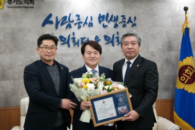[충청뉴스큐] 경기도의회 경제노동위원회 송영만 의원이 26일 경기도의회 의장 접견실에서 ‘2019년 경기도의회 의원발의 우수조례’ 의장 표창을 수상했다.