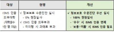 과기정통부는 절충안 시행을 위해 ‘정보통신망 이용촉진 및 정보보호 등에 관한 법률 시행규칙’과 ‘정보보호 및 개인정보보호 관리체계 인증 등에 관한 고시’의 개정을 빠르게 추진할 예정이다.