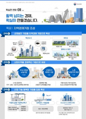 혁신도시는 산학연 클러스터를 활성화하고 복합혁신센터 등 생활인프라를 확충해 지역의 경제거점으로 새만금은 투자진흥지구 도입, 태양광 선도사업 및 수변도시 착공을 시작으로 재생 에너지사업의 메카로 성장시킨다.