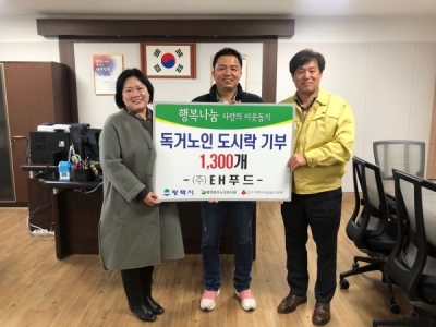[충청뉴스큐] 평택시 고덕면에 위치한 삼성협력업체 ㈜EH 푸드는 코로나19 확산으로 인해 식사를 챙기기 어려운 독거노인 어르신을 위해 28일 송탄출장소를 방문해 도시락 1,300개를 기부했다.