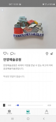 ‘안양예술공원’어플을 내려 받아 사진1과 같이 이미지를 검색하면 사진2처럼 안내멘트로 해설을 듣게 된다.
