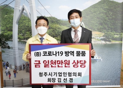 [충청뉴스큐] 김선겸 청주시기업인협의회장이 5일 괴산군청을 방문, 코로나19 방역에 사용해 달라며 1천만원 상당의 방역물품을 전달했다.