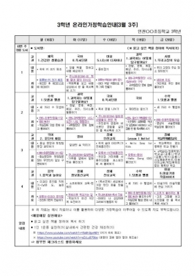 청라중학교는 휴업 기간 중 활용할 교과별 학습지와 과제를 안내했다.