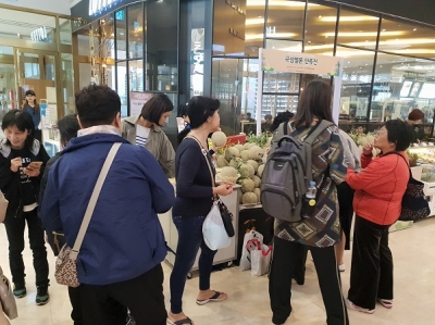 [충청뉴스큐] 곡성군 곡성멜론 농촌 융복합 산업화사업단은 지역 대표 특산물인 곡성멜론의 홍보와 신규 판로 확보를 위해 지난 17일부터 오는 21일까지 5일간 부산 롯데백화점 지하 1층 식품관에서 곡성멜론 판촉전을 추진한다고 밝혔다.