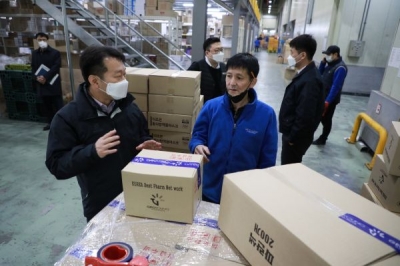 [충청뉴스큐] 정무경 조달청장은 6일 오전 8시 30분 정부의 ‘마스크 수급 안정화 대책’따라 약국에 공급되는 마스크의 공적물량 유통 상황을 점검하기 위해 의약품 유통업체인 ㈜지오영을 방문했다.
