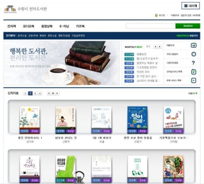 수원시 전자도서관에는 전자책, 오디오북, 동영상북, E-러닝, 키즈북 등 콘텐츠가 있다.
