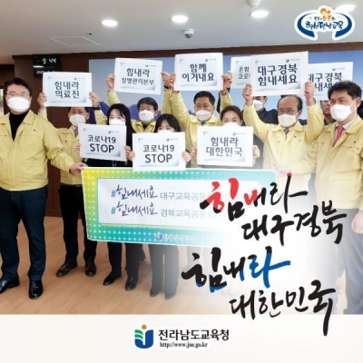 [충청뉴스큐] 전라남도교육청이 코로나19 바이러스 감염으로 큰 어려움을 겪고 있는 대구·경북 주민을 돕기 위한 응원 행렬에 동참했다.