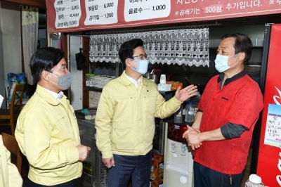 [충청뉴스큐]허태정 대전시장이 9일 코로나19로 어려움을 겪고 있는 소상공인을 직접 찾아가 업주를 격려했다.