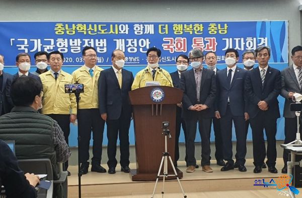 국가균형발전특별법 일부개정법률안이 지난 6일 국회를 통과한 가운데, 양승조 충남도지사가 9일 기자회견을 열고 “충남 혁신도시 지정을 이끌어 220만 충남도민의 자존심을 지켜내겠다”고 밝혔다.