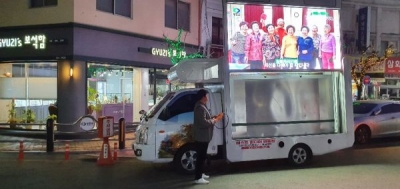 이 대표는 자신이 소유한 LED 영상차량으로 출퇴근 차량과 유동인구가 많은 영동읍 회전교차로를 중심으로 아파트 밀집지역은 물론 면단위를 누비며 코로나19 예방 파수꾼 역할을 톡톡히 하고 있다.
