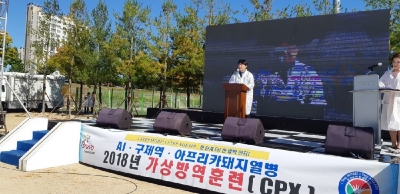 [충청뉴스큐] 경상남도는 19일 합천 군민체육공원에서 ‘조류인플루엔자I·구제역·아프리카돼지열병 가상방역 현장훈련’을 실시했다고 밝혔다.