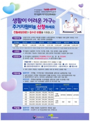 [충청뉴스큐] 부산시가 올해 주거급여 지원대상의 기준 중위소득이 지난해 44%에서 45% 이하로 확대되고 임차가구에 대한 기준임대료는 9.8~11.8%, 자가가구에 대한 주택개량지원비는 21%로 상향 지원한다고 밝혔다.