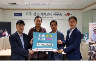 [충청뉴스큐] 재인도네시아 경북대학교 동문회는 대구·경북지역의 코로나19 위기가 하루 빨리 극복되기를 바라는 마음에서 모금한 성금 2억6천만루피아를 지난 10일 대구·경북자카르타사무소를 통해 대구시와 경상북도에 전달했다.