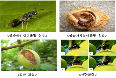 복숭아씨살이좀벌은 어른벌레로 성장한 기간을 빼고 알, 애벌레, 번데기 기간에는 씨앗 속에서 살기 때문에 방제를 해도 효과가 낮다.