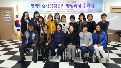 [충청뉴스큐] 음성군은 2018년 충청북도 평생교육 프로그램 공모사업 ‘평생학습 상담활동가 양성과정’ 수료식을 지난 19일 맹동혁신도시출장소 대회의실에서 개최했다.