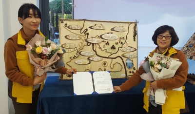 최 해설가와 조 해설가는 특색 있는 자연물을 활용해 좌구산휴양랜드 시설안내도를 만들어 일반부의 생태공예부분 대상을 수상했다.