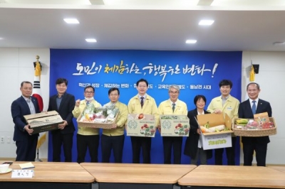 [충청뉴스큐] 경남교육청과 경상남도는 코로나19로 인해 농산물 판로에 어려움을 겪고 있는 농업인을 돕기 위해 양 기관 전 부서가 참여하는 과일꾸러미 구입을 시작하면서 민관 공동으로 어려운 농업 현실 극복에 동참해 줄 것을 전 도민에게 간곡히 호소하고 나섰다.