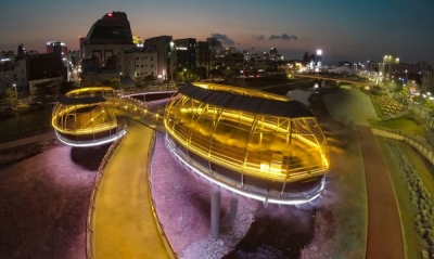 커플브리지는 연결과 소통, 남과 여, 사람과 사람간의 만남의 공간이라는 테마를 반영한 ‘S자’형 보도교로 원형무대, 이벤트공간, 발광다이오드를 이용한 야간조명, 폭염예방시설 등의 부가시설이 배치됐다.