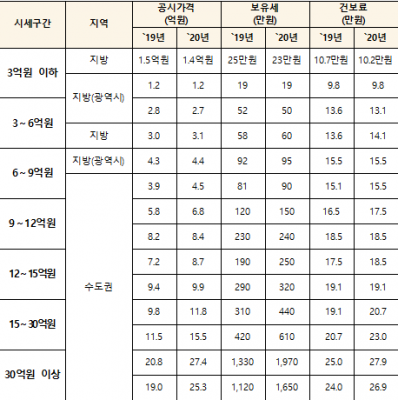 시세 9~15억원 공동주택은 현실화율 70% 미만의 주택을 대상으로 현실화율 70%를 상한으로 현실화율을 제고했고 시세 15~30억원은 75% 미만 주택을 대상으로 30억원 이상 주택은 80% 미만 주택을 대상으로 각각 현실화율 75%, 80%를 수준으로 현실화율을 상향했다.