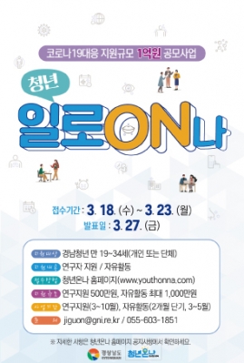 우선, 3월 18일부터 23일까지 ‘청년 일로ON나’ 공모 사업을 진행한다.