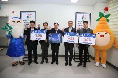 [충청뉴스큐] 2020함양산삼항노화엑스포조직위원회는 19일 엑스포조직위원회 사무처장실에서 ㈜동주산업, 드림팜·드림pf, ㈜진산건설자재와 입장권 구매 약정식을 가졌다고 밝혔다.