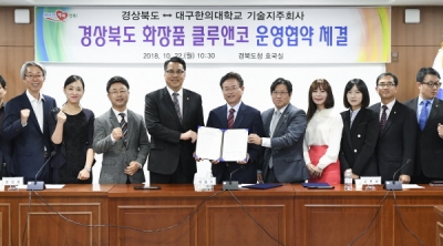 [충청뉴스큐] 경상북도는 22일 도청 회의실에서 경북화장품 공동브랜드 클루앤코 사업의 효율적 운영을 위해 대구한의대학교 기술지주회사와 ‘클루앤코 운영 업무협약’을 체결했다.