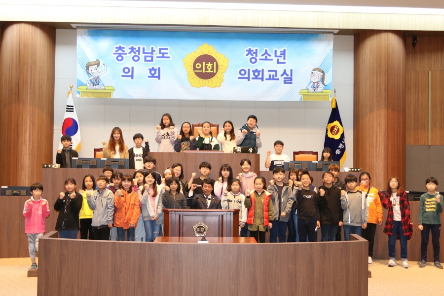 충남도의회는 22일 천안 봉명초등학교 5학년학생 38명을 대상으로 청소년 의회교실을 개최했다. 이날 봉명초등학교 학생들은 충청남도의회 본회의장에서 1일 청소년 의원이 되어 도민들을 위한 정책들이 만들어 지는 과정을 체험하는 동시에 의장 선거, 2분발언, 조례안 2건을 처리했다. 특히 학교생활과 밀접한 ‘학교 내 주차장 시설 개선에 관한 조례안’과 ‘제비뽑기로 자리 정하기에 관한 조례안’을 발의, 학교에 바라는 사항을 심도있게 토론하고 표결하는 기회를 가졌다. 학생들은 “민주적 토론을 통해 처리되는 안건을 직접 체험하면서, 지방의회역할과 기능이 얼마나 중요한지 알게 됐다”고 소감을 밝혔다.