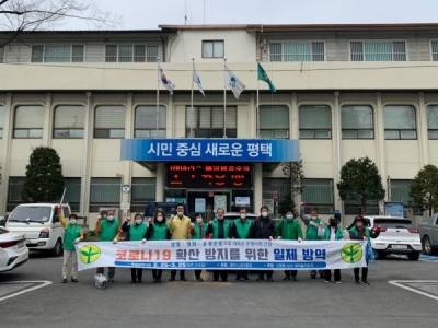 [충청뉴스큐] 평택시 신평동 새마을남녀지도자는 지난 21일 신평동의 주요 인구 밀집 지역에서 코로나19 방역활동 및 환경정화작업을 실시했다.