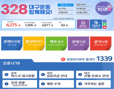 이 밖에 코로나19 조기 종식을 위한 328 대구운동과 관련, 시민들의 자발적인 동참을 이끌어내기 위해 시민행동 5대 수칙을 게재했다.