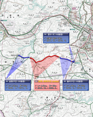 지난 2016년 12월 착공한 이 구간의 준공으로 2009년 삼동 구간 착공 이래 11년 만에 ‘율리~삼동간 연결도로’ 전 구간 사업이 완료됐다.