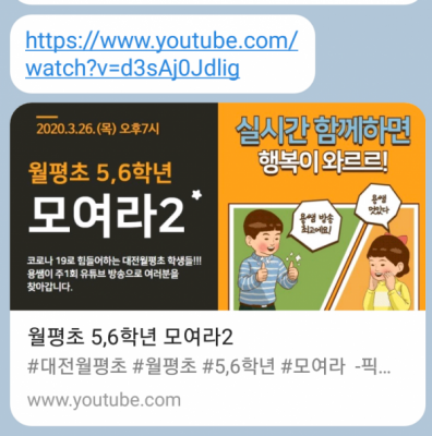 본교 교과 전담 교사 용은 학생들이 친숙하게 가장 많이 접할 수 있는 유튜브를 활용해 휴업기간 중 매주 목요일 7시에 5,6학년들을 대상으로 한 유튜브 라이브 방송을 개설하고 있다.