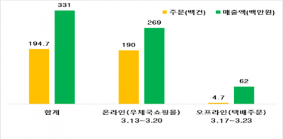 우체국쇼핑몰을 통해 진행된 온라인 할인판매는 지난 13일부터 20일 오전까지 19천건의 주문과 2억 7천만원의 매출액을 달성하고 할인쿠폰이 조기 소진됐다.
