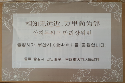 충칭시는 지난 1월 중국발 코로나19 위기 시 확진자 수 증가로 어려움에 있던 도시 중 하나로 지난 2월 중순 부산시에서 마스크 1만 장, 의료용 장갑 3천 세트, 고글 500개를 지원한 바 있다.