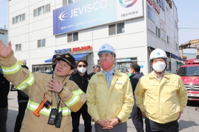 사고 소식을 접한 정 시장은 현장으로 달려가 상황을 점검한 뒤 철저한 사고 수습 및 원인 파악, 주민 피해 파악 등을 거듭 강조했다.