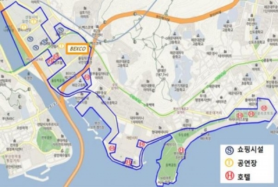 ‘해운대 국제회의복합지구’는 센텀 비즈니스 지역의 벡스코에서 누리마루 APEC 하우스, 해운대 특급호텔을 포함한 약 239만㎡ 구간이다.