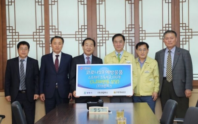 이날 기탁 받은 소독제는 평택시 관내 경로당 및 사회복지시설에 배부해 방역활동에 활용 될 예정이다.