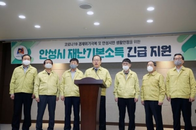 안성시는 3월 31일 안성시청 2층 상황실에서 안성시 재난기본소득 긴급 지급 관련 브리핑을 갖고 3월 30일 기준으로 안성시에 주소지를 두고 있는 모든 시민에게 1인당 재난기본소득 25만원을 지원한다고 밝혔다.