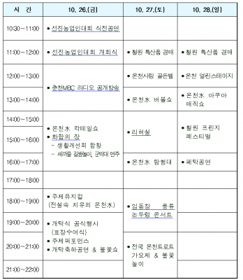 [충청뉴스큐] 2018 대한민국 온천대축제가 오는 26일부터 28일까지‘용암이 만들어낸 숨은 보석, 철원 화산온천’이라는 주제로 강원도 철원군 고석정국민관광지에서 다채롭게 펼쳐진다.